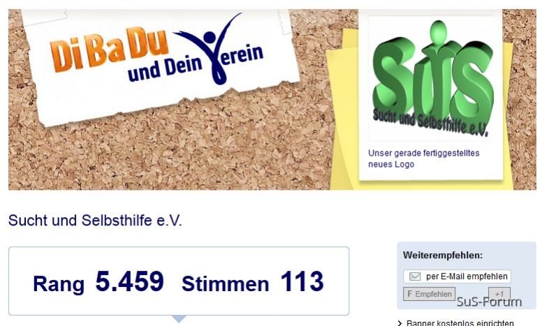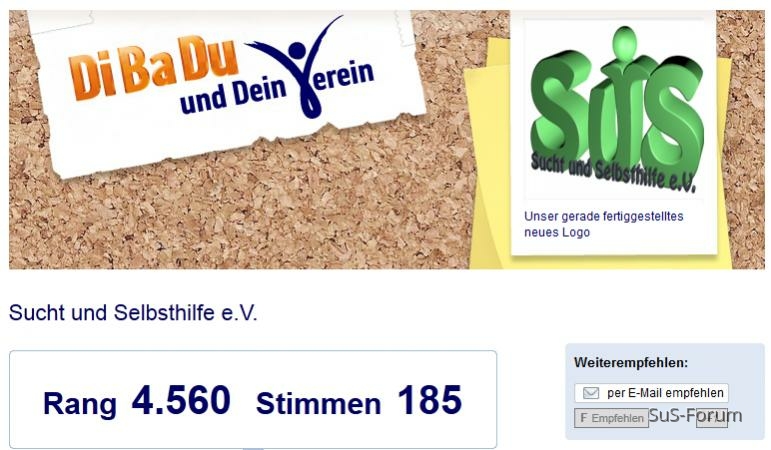==> DiBaDu suchtundselbsthilfe - Google-SucheWarum aber soll man irgend nem fremden Verein mit so einem Thema Stimmen geben?