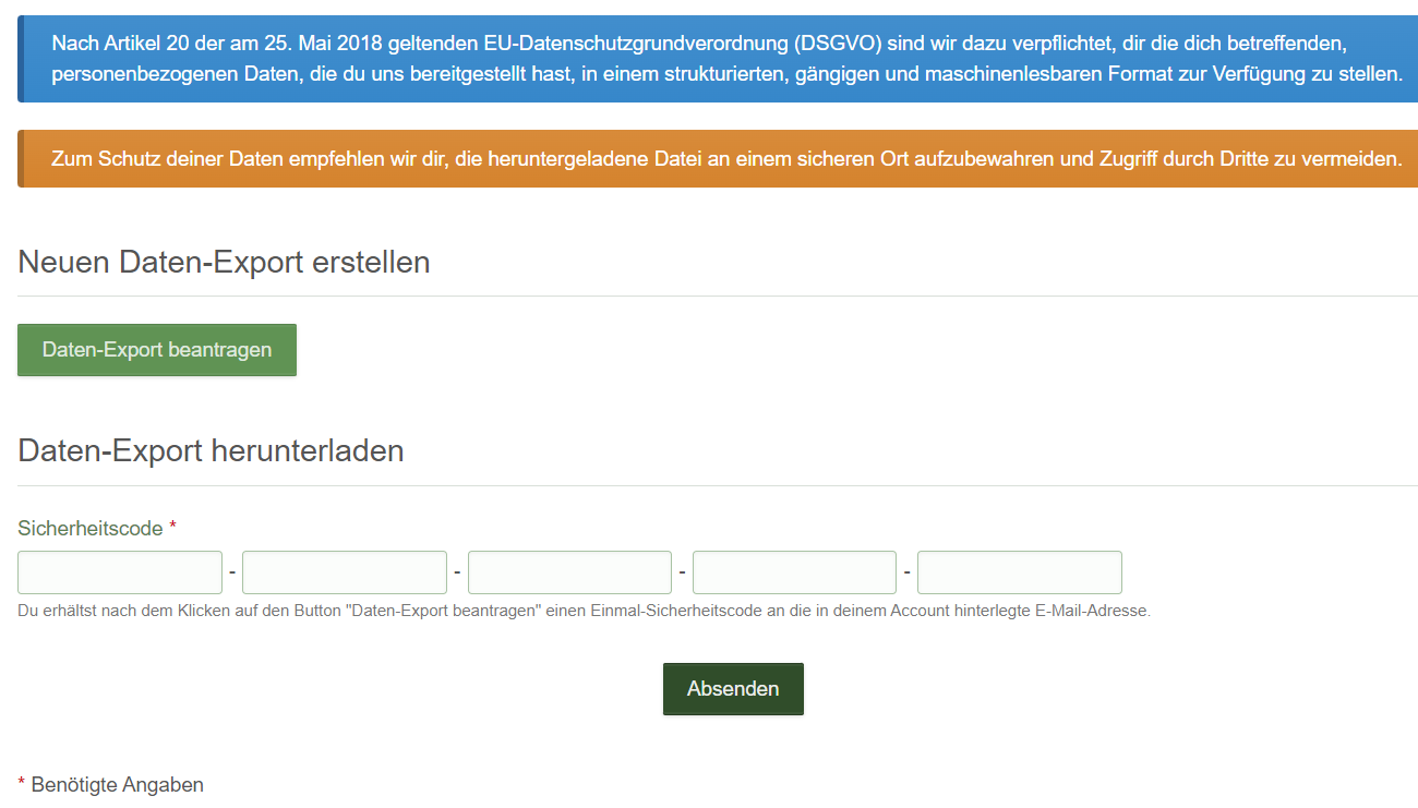 Bevor nun die Daten abgerufen werden können, muss dies über den Button [btn='Daten-Export beantragen','500px'][/btn] bestätigt werden.