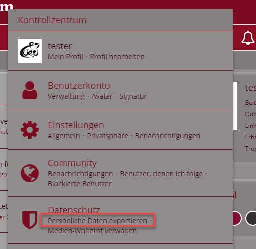 Der Weg führt über das Kontrollzentrum > Datenschutz > persönliche Daten exportieren