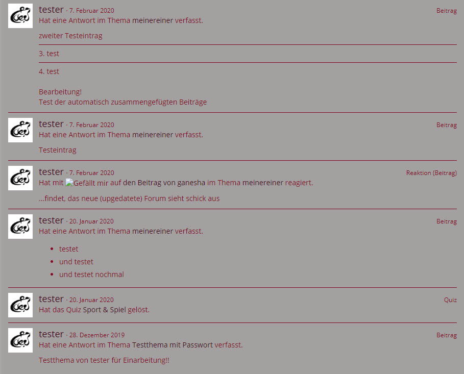 Auf der Seite der letzten Aktivitäten kann man eben alles sehen, was ein Forenmitglied im SuS-Forum so macht oder das System vermeldet.