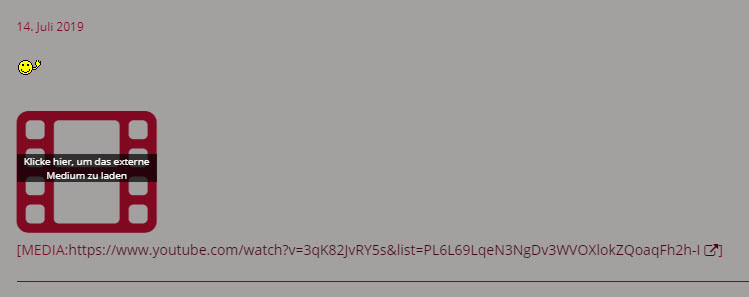 Externe Videos, in der Regel kommen die in unserem Forum von YouTube, werden ohne vorherige Veränderung der Einstellungen nicht direkt angezeigt.
