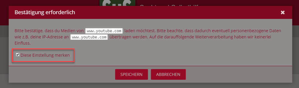 Hier kann man einmalig zustimmen (ohne Haken setzen) - so wird man immer auf's neue gefragt (temporäre Zustimmungen werden nach Ablauf der Sitzung automatisch widerrufen).