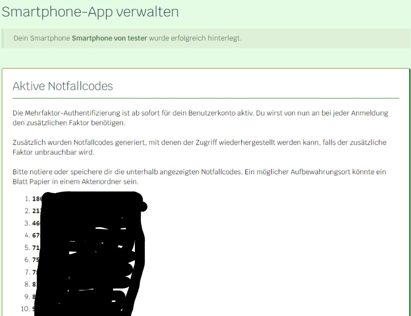 Wie erklärt, Backup-Codes unbedingt selbst sichern!!