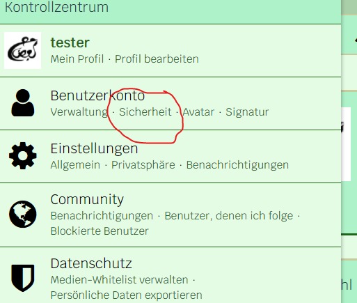 - Hier befindet sich der neue Punkt Benutzerkonto-Sicherheit
