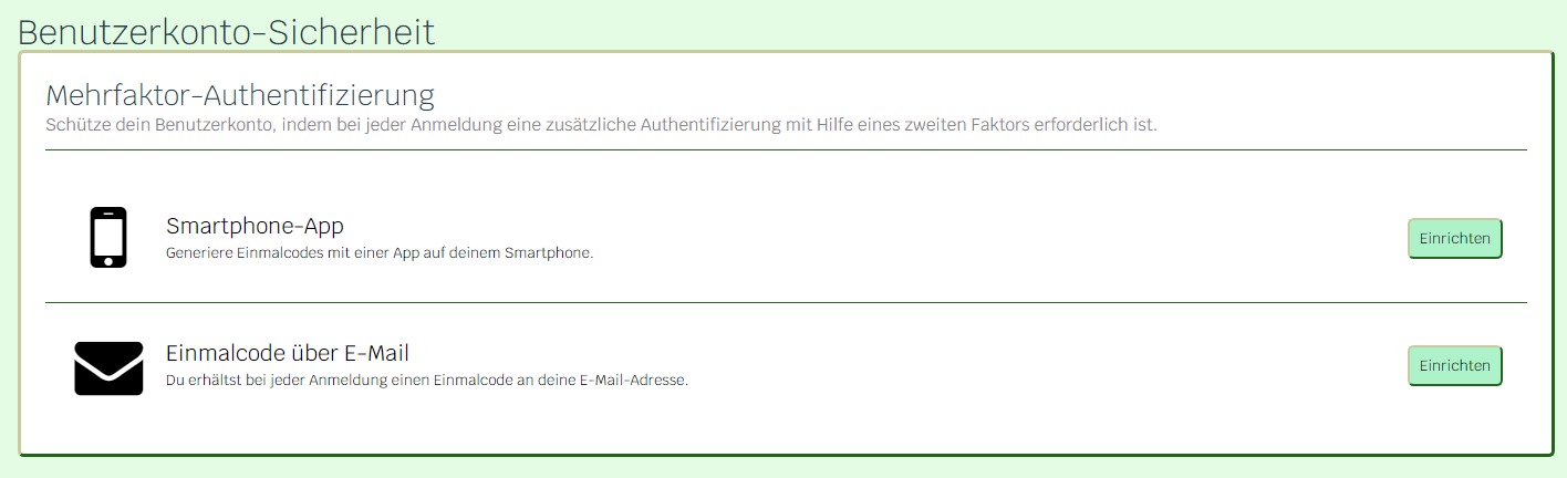 Du hast die Mehrfaktor-Authentifizierung mit dem Verfahren Smartphone-App erfolgreich aktiviert. Du wirst von nun an bei jeder Anmeldung den zusätzlichen Faktor benötigen.