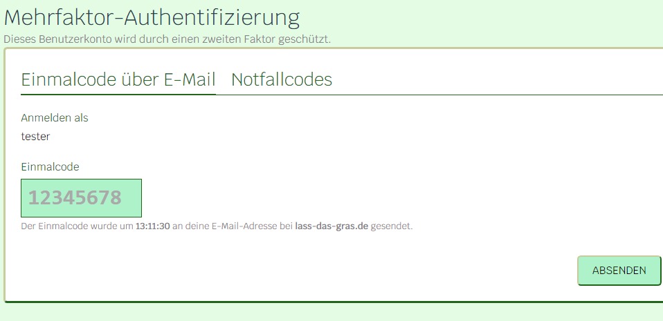 Bei diesem Verfahren erhält der Nutzer beim Login eine E-Mail an die im Konto hinterlegte Adresse zugeschickt, die einen Einmalcode enthält, der zusätzlich zum Kennwort eingegeben werden muss, um den Login-Vorgang abzuschließen.